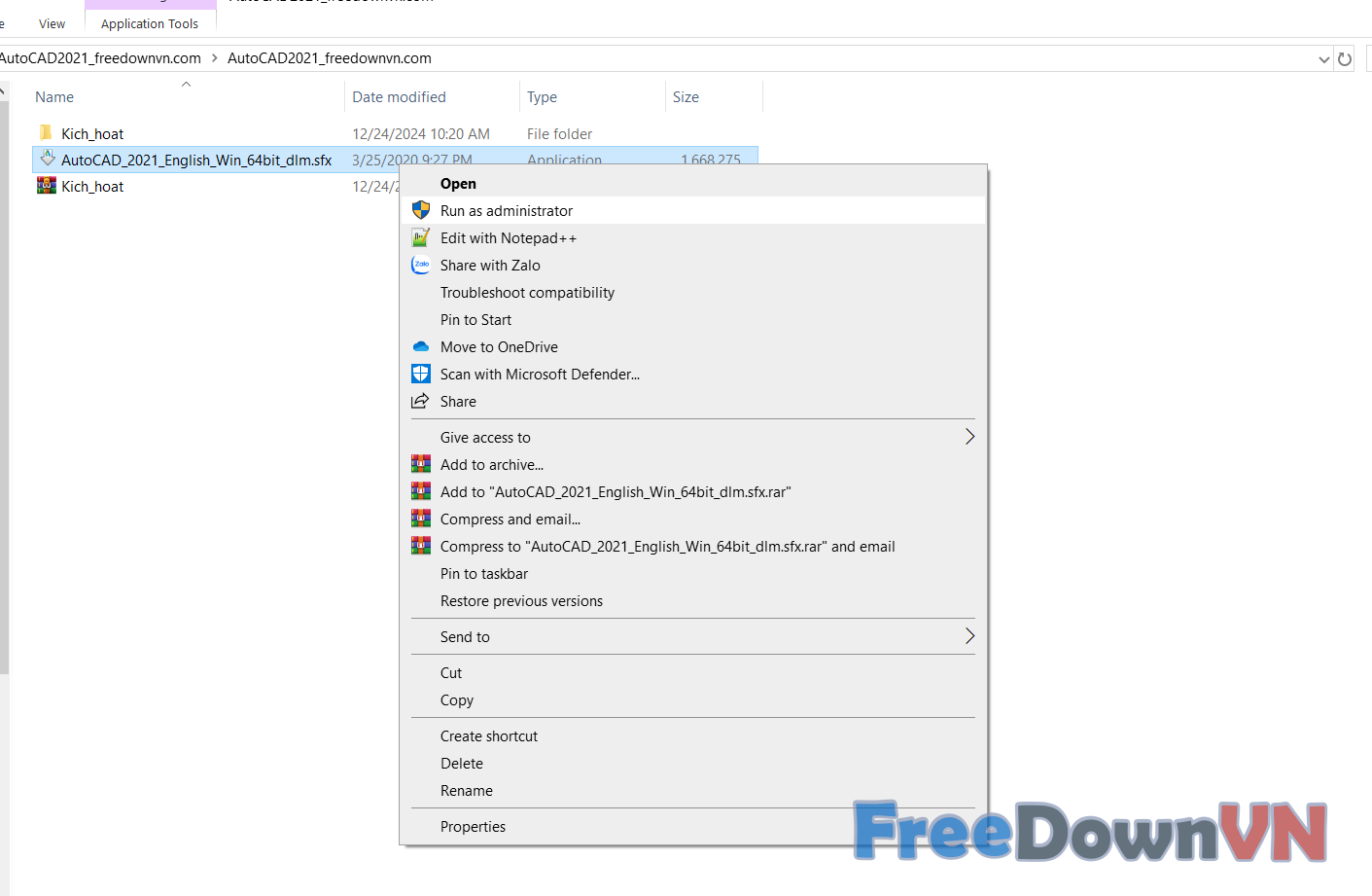 Bước 1: Giải nén phần mềm Autocad 2021.