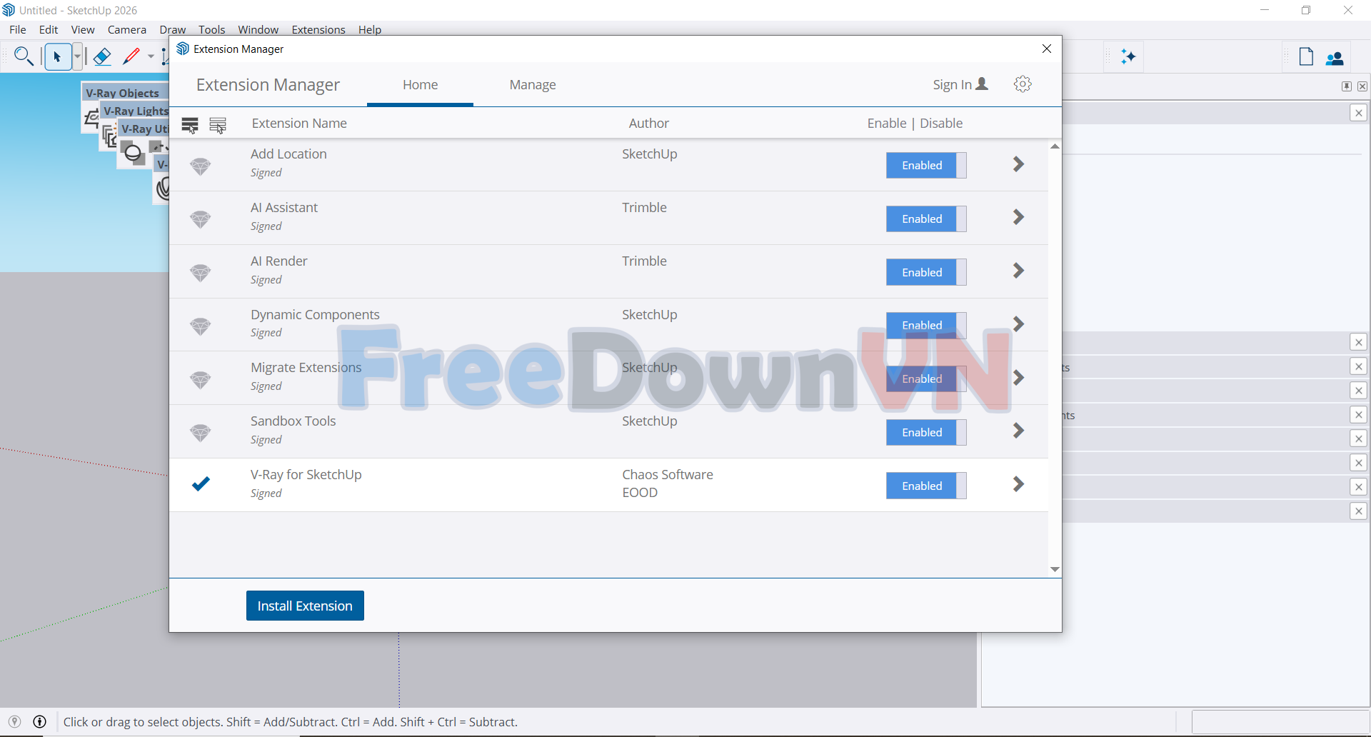 Menu Extensions → V-Ray