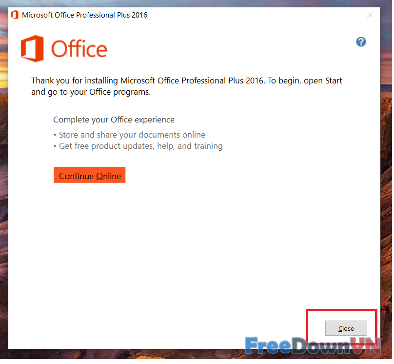 Như vậy là freedownvn.com đã hoàn thành bài viết hướng dẫn cài đặt Office 2016 nếu gập khó khăn vui lòng để lại bình luận dưới bài viết để được hỗ trợ.