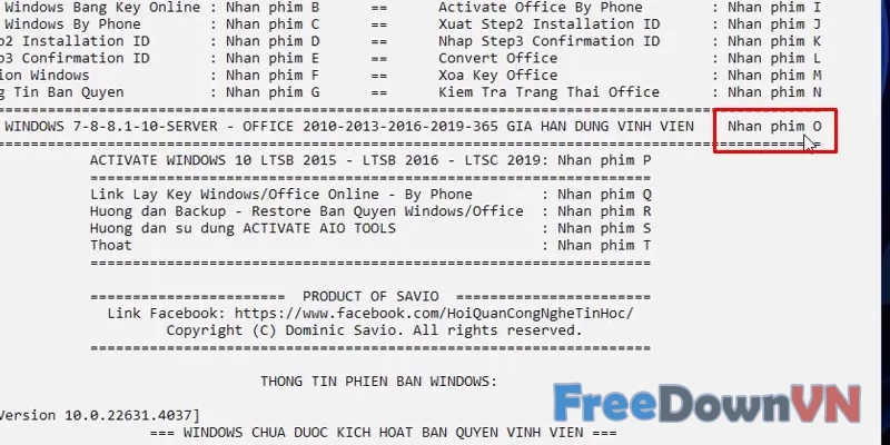 Bước 03: Bấm phím O.