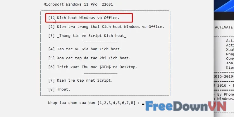 Bước 04: Bấm phím số 1.