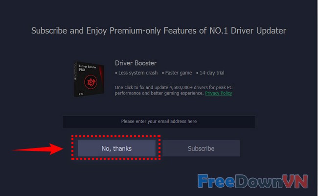 Bước 6: Cuối cùng, bạn có thể bỏ qua việc Subcribe và nhận thông tin phần mềm từ IObit bằng cách click No, thanks