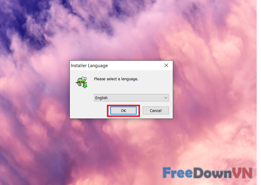 Bước 2: Lựa chọn ngôn ngữ. Bấm OK
