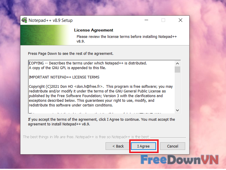 Bước 4: Chọn đồng ý với các điều khoản của phần mềm Notepad++ bằng cách bấm I Agree